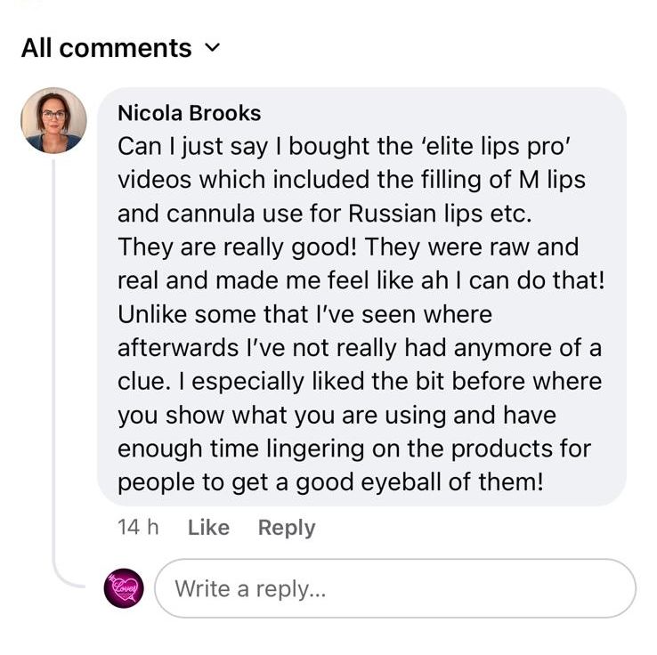 “Honestly, after buying the lips elite pro it was like I had bought a Shadowing course . I was debating whether to spend money on Shadowing or online videos , and I can’t stress how good and easy to Follow all the tutorials were ! Thank you Louise !!”